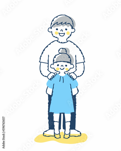 people, boy, girl, children, children, two people, chum, brother, family, brother, sister, toddler, sweet, japanese, illustration, young, smile, white background, front, stand, child rearing, pose, lively, light, expression, t-shirt, children, fun, children