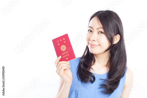 woman, girl, passport, passport, travel, vacation, work, overseas, japan, japanese, id, people, smile, young, sweet, beauty, black hair, copy space, white, background