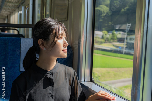 電車で旅する女性1
