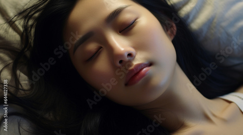 ベッドで眠る若い日本人女性