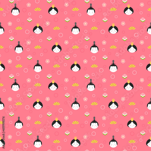 ひなまつりのアイテム模様 シームレスパターン(ピンク)