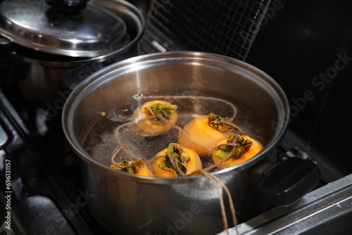 skin, scrape, dish, foodstuff, meal, japan, indoor, indoor, kitchen, copy space, light, kitchen knife, cooking, preparation, persimmon, oyster, oyster, fruit, delicious, food, fruit, fall, sweet, lifestyle, orange, fresh, fresh, delicious, chopping board, string, string, boiling water, antiseptic, simmering, hot water