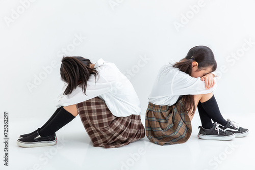 fight, fight, truancy, cry, denial, drop, sad, tease, depression, woman, girl, bag, copy space, sweet, japanese, people, apprehension, trouble, pressure, fatigue, stress, flop, friends