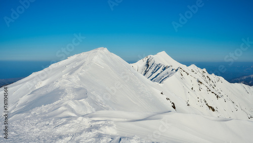 winter, landscape, view, snow, nature, mountain, ridge, sunny, blue skies, japan, climb, mountaineering, hike, showplace, trek, mountain, snow, sky, outdoors, open air, tour tourism, peak, peak, footstep, trace