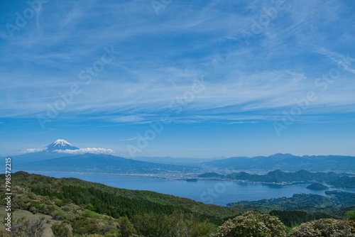 fuji, izu, hike, trek, climb, shizuoka, nature, tour tourism, travel, showplace, sky, mountain, sea, copy space, blue skies, landscape, sunny, japan, cloud, tourist attraction, world heritage, fuji, beach, view, blue, snow, view, spring, vision, scene