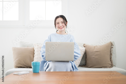 woman, personal computer, smile, people, lifestyle, japanese, room, seated, indoor, young, relax, casual, indoor, mother, homemaker, work, cyberspace, notebook, home, house, copy space, search, house, residence, mail, portrait, waist up, table, relax, examine, couch, light, front, sweet, smile, vacation, home, pretty, asian, fun, personal computer, beauty