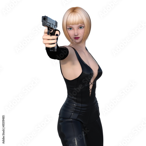 pretty, woman, combat, alone, arm, pose, costume, sexy, game, spy, action, gun, blond