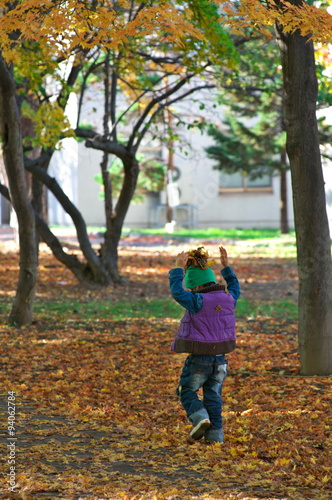 fall, park, play, pretty, brown, residential area, sweet, children, fun, yellow, hat, open air, jacket