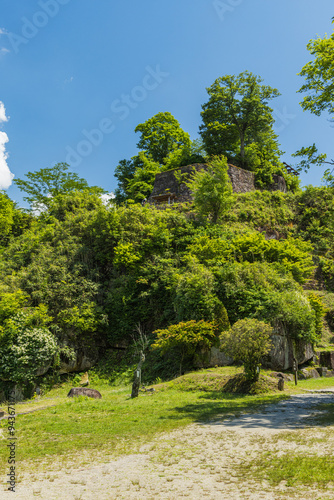 stone wall, historic site, castle, landscape, midland, midland, lookout, rock, hill, mountain, wood, grove, forest, forest, green, green, sky, blue skies, sunny, nature, history, showplace, view, tour tourism, tourist attraction, travel, asia, open air