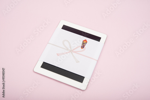 tablet, terminal, device, touch, touch screen, gift, celebration, bow, studio, japan, sum, indoor, indoor, pink, aerial