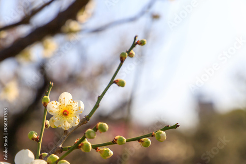 flower, flower petals, hanami, spring, early spring, nature, plant, landscape, season, sunny, leisure, image, material, background, copy space, background, bloom, branch, refreshing, lovely, clean, fresh, pretty, healing, floral, light, osaka, japan, wood, bokeh, white