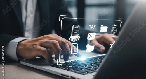 tax, tax, finance, financial, accounting, account, business, management, datum, report, modern, technology, digital, online, form, document, paperwork, deadline, payment, income, money, investment, planning, strategy, success, growth, solution, inspecting, compliance, law, legal, adviser, adviser, professional, keyboard, laptop, computer, working, office, desk, corporate, person, man, hand, economy