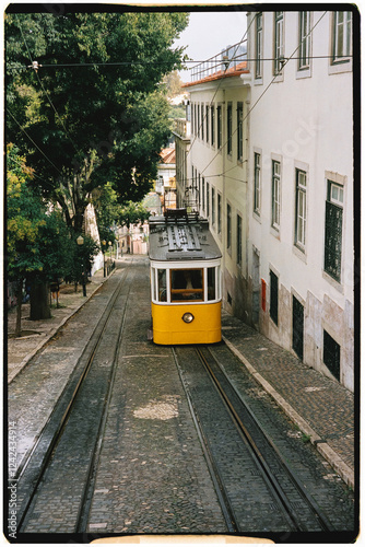 analog, building, city, daytime, downtown, film, holiday, lifestyle, lisboa, local, long shot, nobody, outdoors, portugal, railway, road, scan, street, streetcar, sunny, tour tourism, track, traditional, transportation, traveling, trip, urban, vehicle, vintage