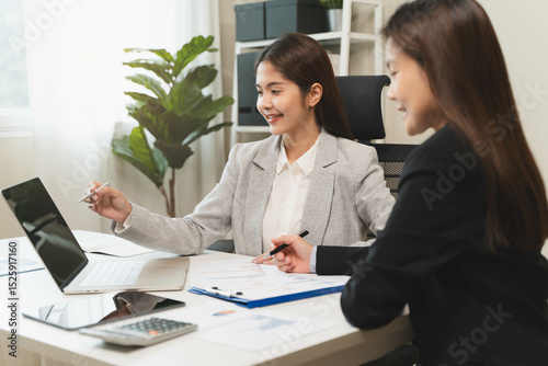 Financial consult planning investor asses and present to client, Close up shot client and advisor review investment strategy in the office.