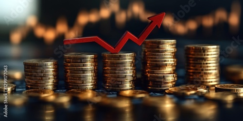 coin, stack, growth, investment, finance, money, wealth, success, profit, increase, currency, economic, market, trading, business, economy, financial, capital, asset, return, portfolio, stock, bond, share, generating, revenue, income, upward, trend, arrow, progress, development, ascending, positive, red, gold, stacked, chart, graph