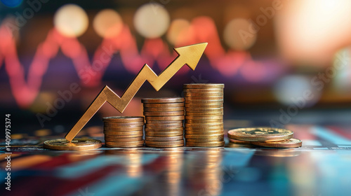 finance, financial, growth, money, coin, coin, stack, stack, arrow, upward, rising, increase, investment, economy, market, stock, chart, graph, business, wealth, success, profit, gain, currency, gold, metal, illustration, concept, symbol, banking, trading, fund, income, revenue, value, financial success, stock exchange