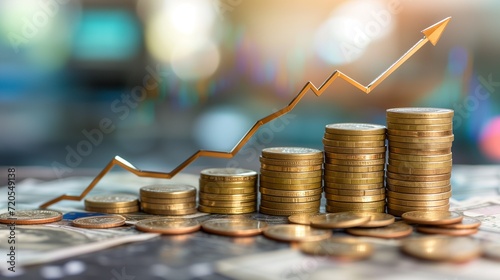 Financial growth showcasing ascending arrows symbolizing increasing profits, successful investments, and positive business revenue trends.
