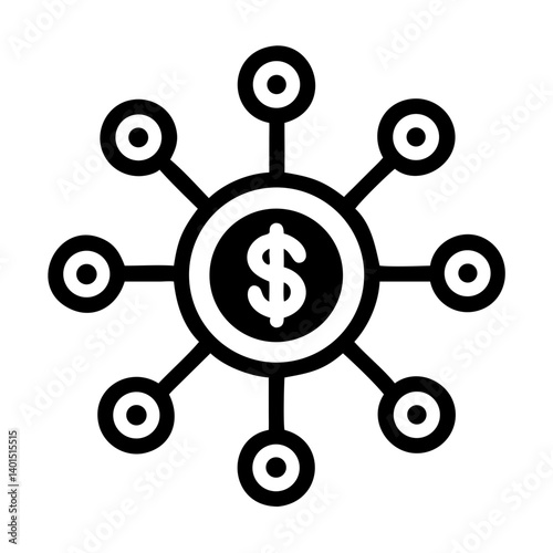 Financial Network Dollar Distribution Icon Representing Wealth Allocation and Economic Flow
