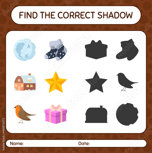 Find the correct shadows game with christmas icon. worksheet for preschool kids, kids activity sheet