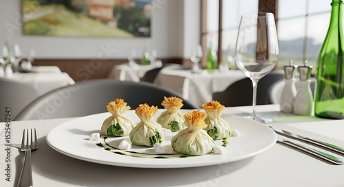 Fine Dining Spinach Pastry Bags Gourmet Restaurant Dish