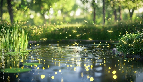 Fireflies Dancing Over a Serene Pond in a Summer Forest