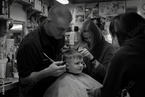 barbershop, young boy, barber, grooming, father, mother, hair care