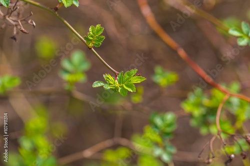 First spring leaves on bush branches