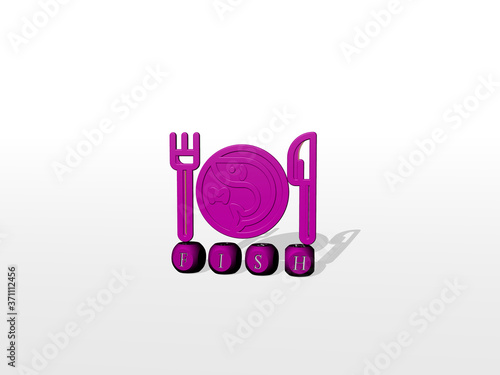 fish cubic letters with 3D icon on the top - 3D illustration for background and animal