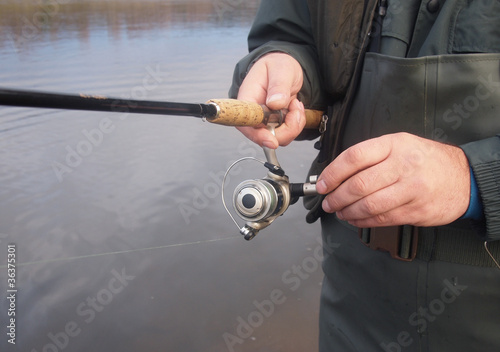 angling, water, arm, casting, catch, equipment, fisherman, fishing, hand, line, lure, man, reel, river, spinning, sport, top, water, horizontal