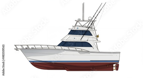 fishing, boat, yacht, vessel, watercraft, marin, ship, profile, side, illustration, graphic, design, white, blue, red, brown, fishing boat, commercial, transport, nautical, equipment, vector, isolated, image, digital, graphic design, promotional, copy space, transportation