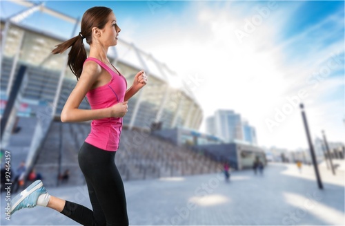 fitness, fit, space, runner, model, gym, studio, focused, sprint, race, alertness, training, strength, sport, isolated, clothing, activity, copy, spring, determination, middle, copy space, 1, female, ready, grey, dedication, lifestyle, healthy, young