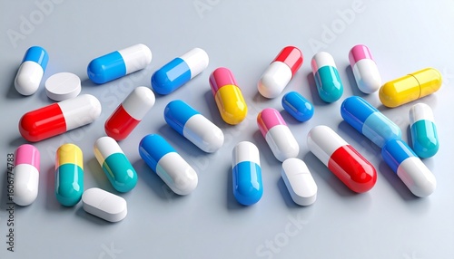 capsule, medicine, pill, pharmaceutical, drug, health care, colourful, pink, blue, white, red, yellow, beige, pastel, tablet, treatment, make well, dosage, container, plastic, design, modern, aligned, layout, aesthetic, clean, minimal, medicals, health, vibrant, composition, texture, concept, arrangement, visual, studio, pill, vitamin, supplement, symmetry, perspective, background, balance, therapy, product, variety, wellness, sterile