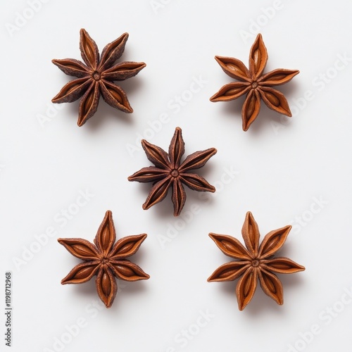 star anise, spice, seasoning, favor, aromatic, culinary, ingredient, food, cooking, herb, natural, organic, vegan, vegetarian, healthy, epicure, cookery, asian, chinese, indian, vietnamese, background, white, isolated, arrangement, closeup, macro