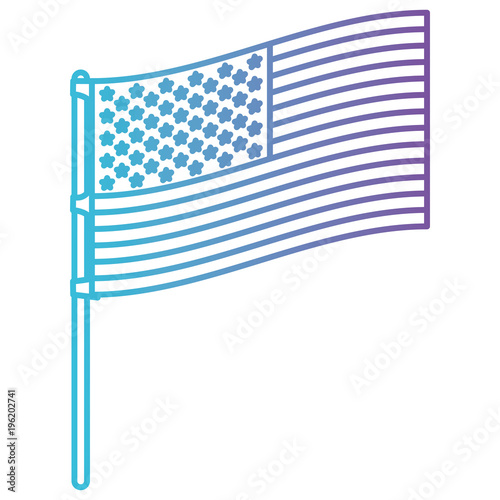 flag united states of america in pole flat design in color gradient silhouette from purple to blue vector illustration