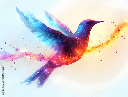 Flat Abstract Glowing Bird in Flight Symbolizing Freedom and Human Rights - Vibrant Colors for Human Rights Day | Captivating Digital Illustration