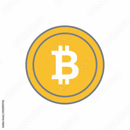 Flat Color Vector Icon of Cryptocurrency Coin with Bitcoin Symbol
