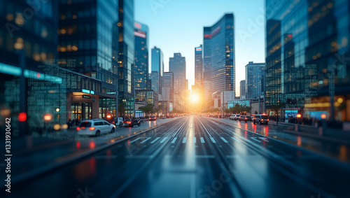 Flat Double Exposure Illustration: Merging Business Charts with Urban Financial Districts for Enhanced Data Visualization in a Smart Business Context