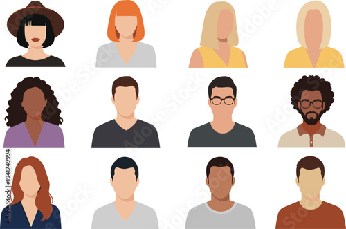 Flat People Avatar Collection with Diverse Men and Women Characters for User Profile Pictures, Social Media Accounts, Website UI, and Team Illustration.
