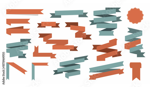ribbon, ribbon, banner, vector, set, flat, decorative, label, loop, folded, corner, signs, icon, badge, design, graphic, element, web, poster, illustration, presentation, celebration, award, clean, minimal, isolated, white, smooth, solid