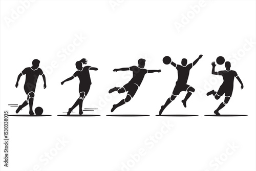 Flat soccer vector icons showcasing male and female players in motion