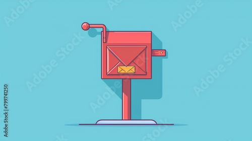 flat, solid, colours, illustration, cherry, red, mailbox, envelope, peeking, light, blue, background, mail, postal, communication, correspondence, letter, sending, receiving, delivery, message, post, traditional, vintage, retro, service, rural, urban, street, letterbox, colourful, design, graphic, vector, box, three-dimensional, business, send, electronic mail, flag, icon, open, postbox, postage, signs, electronic mail, metal, tower
