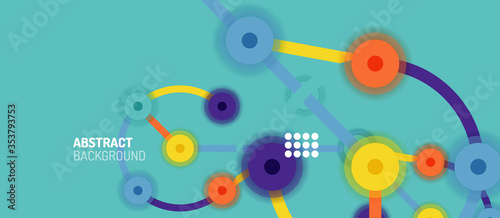 Flat style geometric abstract background, round dots or circle connections on color background. Technology network concept.