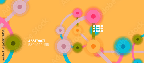 Flat style geometric abstract background, round dots or circle connections on color background. Technology network concept.