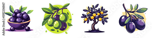 flat, style, illustration, olive, isolated, white, background, graphic, vibrant, organic, healthy, fresh, design, minimal, artistic, bold, colourful, smooth, natural, cut-out, mix, collection, set