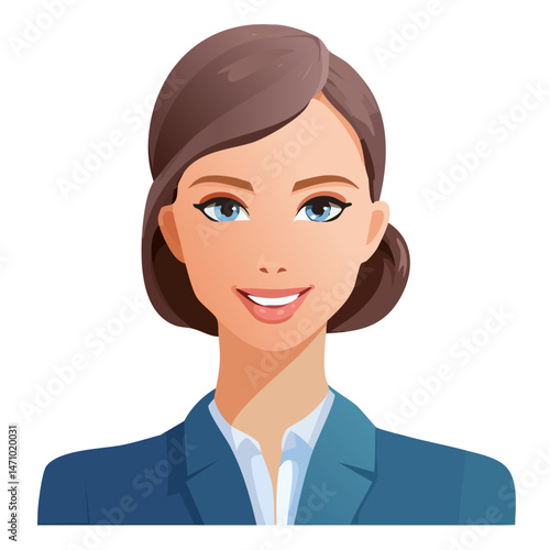 Flat Vector. Portrait of only one Woman. Simple Background.