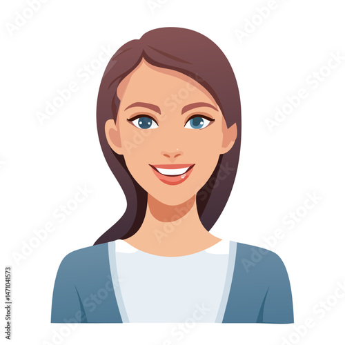 Flat Vector. Portrait of only one Woman. Simple Background.