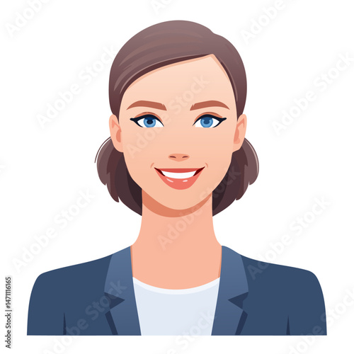 Flat Vector. Portrait of only one Woman. Simple Background.