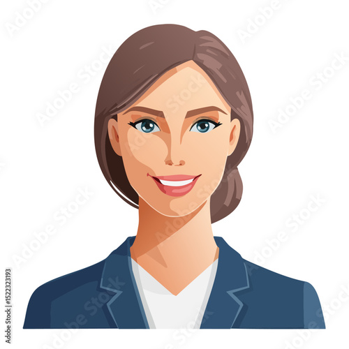 Flat Vector. Portrait of only one Woman. Simple Background.