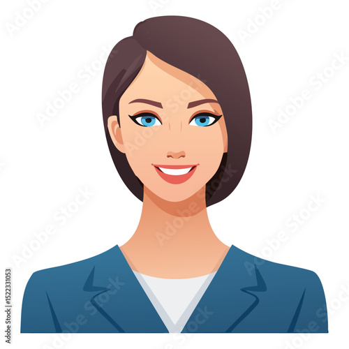 Flat Vector. Portrait of only one Woman. Simple Background.