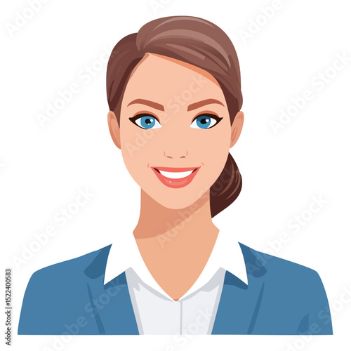 Flat Vector. Portrait of only one Woman. Simple Background.